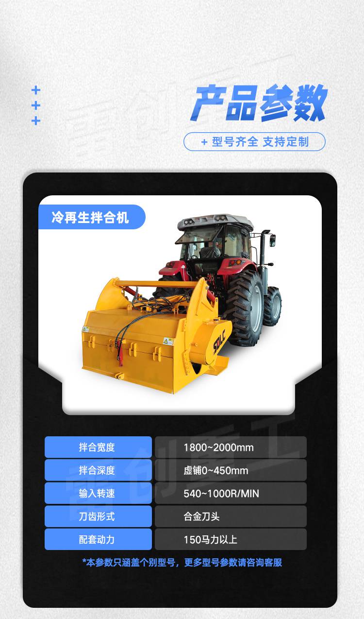 产品特性: 拌和机 品牌: 雷创重工 型号: 2000 路面机械类型: 拌合机 发动机型号: 206 额定功率: 56 辊轴直径: 2166 额定转速: 208 摊铺厚度: 218 摊铺宽度: 2377 摊铺速度: 7 铣刨宽度: 2155 铣刨深度: 316 搅拌能力: 1.15 行驶速度: 8 爬坡能力: 315 冷料仓容积: 9 整机重量: 1.16 生产能力: 26 规格: 2155
